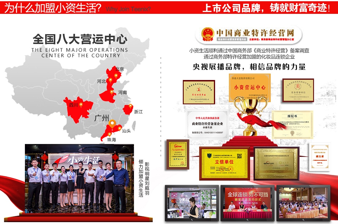 上市公司股份制連鎖◎通過國家商務部《商業特許經菪》備案資質的港資化妝品連鎖機構◎定制型加盟模式店